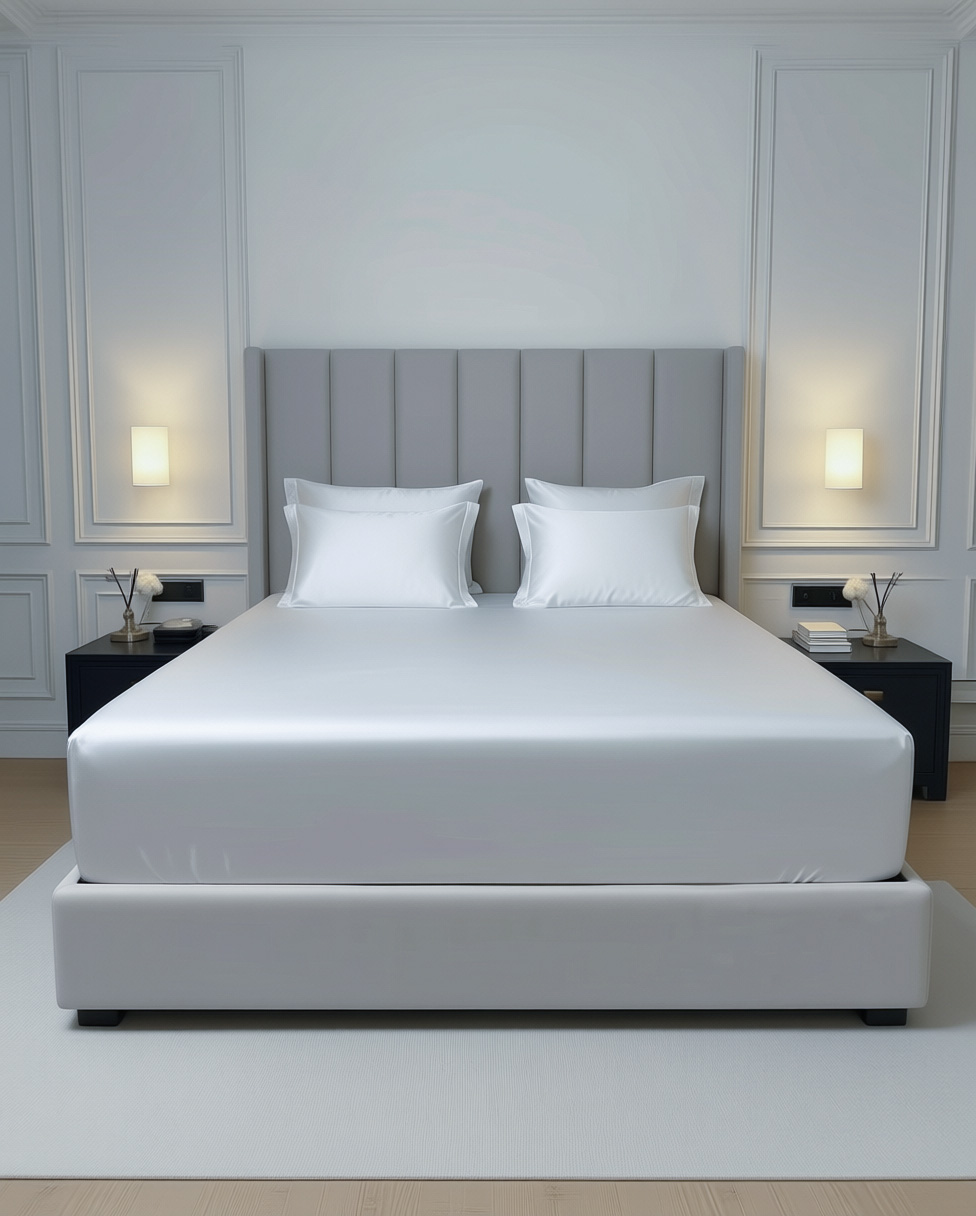 Donja plahta izrađena od kvalitetnog satena gustoće 250 niti (250TC) osigurava iznimnu mekoću, trajnost i luksuzan osjećaj na koži. Satensko tkanje daje tkanini svilenkastu glatkoću i elegantan izgled.