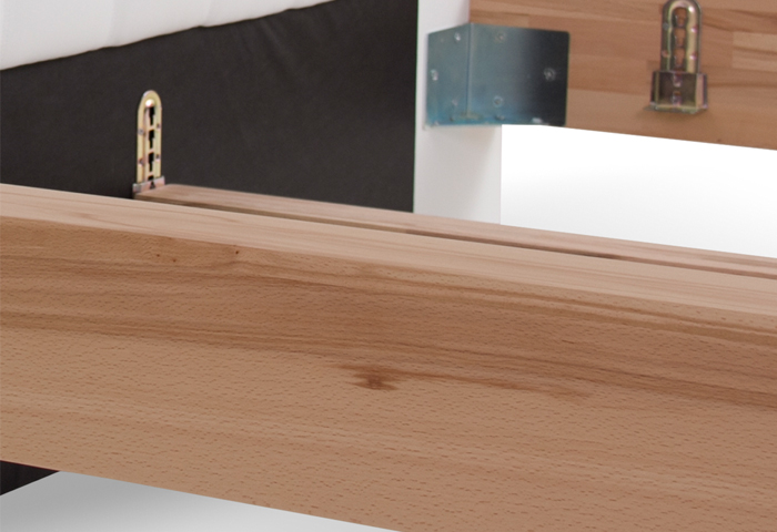 - Podesivo ležište: Ležište kreveta, na koje se stavlja podnica ili latofleks, je fleksibilno i moguće je dizati ili spuštati dva nosača od punog drveta u unutrašnjosti kreveta i to na 4 različita nivoa visine. Manipulacija je od 8-16 cm, tako da na ovaj način možete po potrebi viši madrac spustiti u krevet a niži istaknuti u visinu.