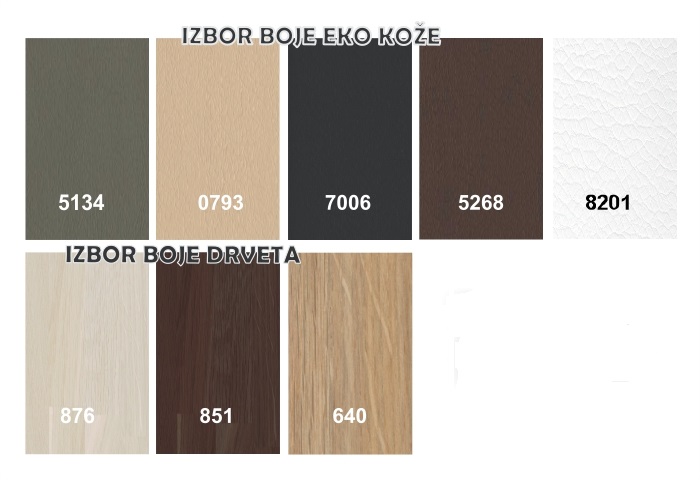 - Izbor dezena eko kože: bijela, smeđa, crna, bež, smeđe-siva