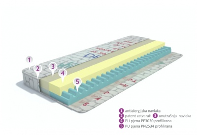 S obzirom na popularnost memorijske pjene u industriji madraca, madrac Memory Roll 3+12 kreiran je kao odgovor na potražnju tržišta za pristupačnim i funkcionalnim madracem. Madrac je praktičan radi rolanog pakiranja i predstavlja kombinaciju dobre potpore tijelu i udobnosti. Navlaka madraca je tretirana antialergijskim tretmanom za dugotrajnu eliminaciju grinja i bakterija iz madraca. Visokokvalitetna periva navlaka s antialergijskim svojstvima izrađena od pletene tkanine koja ispunjava zahtjeve Oeko-Tex standarda. Ukupna visina je 18 cm.